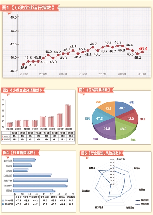 2018年8月份,“經(jīng)濟(jì)日?qǐng)?bào)-中國(guó)郵政儲(chǔ)蓄銀行小微企業(yè)運(yùn)行指數(shù)”(見(jiàn)圖1)為46.4,較上月上升0.1個(gè)點(diǎn),本月小微企業(yè)運(yùn)行有所回升。 從各分項(xiàng)指標(biāo)指數(shù)(見(jiàn)圖2)來(lái)看,呈現(xiàn)“六升兩降”態(tài)勢(shì)。其中,市場(chǎng)指數(shù)為43.5,上升0.1個(gè)點(diǎn);采購(gòu)指數(shù)為45.8,上升0.2個(gè)...