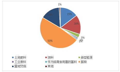 目前,我國農作物秸稈的綜合利用主要有以下幾種途徑:一是直接還田作為土地肥料(15%);