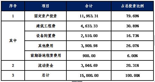 其中:固定資產(chǎn)投資11,953.31萬元(設(shè)備購置、土建工程、購地費(fèi)等);
