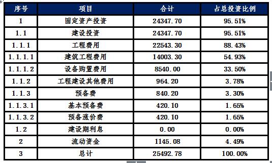 2、項(xiàng)目總投資25492.78萬元,符合當(dāng)?shù)赝顿Y標(biāo)準(zhǔn);