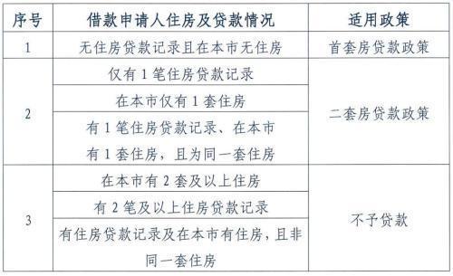 《通知》規(guī)定,借款申請人名下無住房貸款記錄(包括商業(yè)性住房貸款、住房公積金個人住房貸款)且在本市無住房的,按首套房貸款政策辦理;凡不屬于首套房情形,被核定為是二套房的,按二套房貸款政策辦理;如果被核定為有兩套及以上住房的,不予貸款。