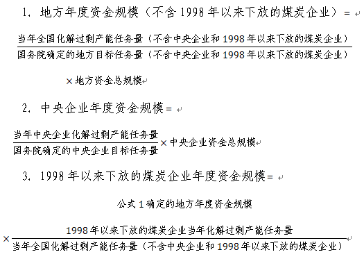 第五條 專項獎補資金標(biāo)準(zhǔn)按預(yù)算總規(guī)模與化解過剩產(chǎn)能總目標(biāo)計算確定。撥付地方和中央企業(yè)的專項獎補資金分別核定,分開使用,年度資金規(guī)模分別按下述公式確定:
