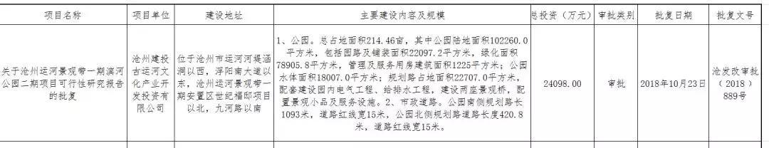 滄州市發(fā)改委發(fā)布《關(guān)于滄州運(yùn)河景觀(guān)帶一期濱河公園二期項(xiàng)目可行性研究報(bào)告的批復(fù)》。