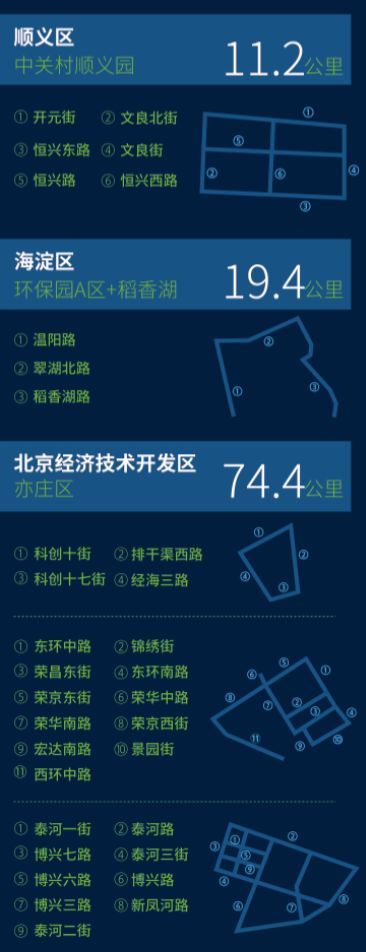 目前北京市在順義區(qū)、海淀區(qū)和經(jīng)濟(jì)技術(shù)開發(fā)區(qū)確定了33條共計105公里的首批開放測試道路,這些測試道路都選擇在五環(huán)外,避開住宅區(qū)、辦公區(qū)、醫(yī)院、學(xué)校等人流量、車流量集中的區(qū)域,測試時段為白天,但避開早晚高峰時段。