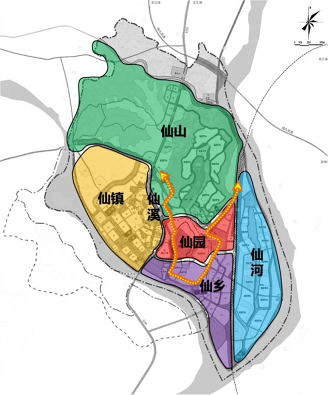 ??在全面分析規(guī)劃地空間與資源基礎(chǔ)上,提出“一核一帶四區(qū)”的空間布局結(jié)構(gòu),打造仙園——詩仙文化朝圣核心區(qū);仙溪——雙溪游仙風情發(fā)展帶;仙鄉(xiāng)——醉仙文化休閑區(qū);仙山——花月仙境度假區(qū)、仙河——逍遙仙河養(yǎng)生區(qū);仙鎮(zhèn)——青蓮詩歌生活鎮(zhèn)四區(qū),形成一核引領(lǐng)、一帶驅(qū)動、四區(qū)共進空間布局結(jié)構(gòu)。