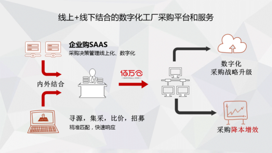 過(guò)去企業(yè)采購(gòu)的SRM系統(tǒng)非常昂貴,平均的實(shí)施成本30-50萬(wàn),甚至更高,然后內(nèi)部全部實(shí)施起來(lái)可能還要半年。而產(chǎn)業(yè)互聯(lián)網(wǎng)平臺(tái)的價(jià)值,就是讓產(chǎn)業(yè)中所有的參與方數(shù)字化的門檻降為零。阿里巴巴的從一開(kāi)始就是免費(fèi)發(fā)布信息和尋找供應(yīng)商,通過(guò)另外的增值服務(wù)收費(fèi),產(chǎn)生自己的盈利模式。佰萬(wàn)倉(cāng)打造的這一套企業(yè)采購(gòu)SAAS系統(tǒng)對(duì)工廠也是免費(fèi)的,平臺(tái)是通過(guò)第三方供應(yīng)鏈服務(wù)來(lái)產(chǎn)生盈利。繞開(kāi)上游的壁壘和下游的擠壓,找到自己的盈利模型,才是我們工業(yè)電商要探索的路徑。