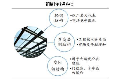 目前國內(nèi)鋼結(jié)構(gòu)行業(yè)市場化程度高,行業(yè)集中度低,同質(zhì)化競爭嚴(yán)重。根據(jù)工藝和用途, 鋼結(jié)構(gòu)行業(yè)又可分為輕鋼結(jié)構(gòu)、多高層鋼結(jié)構(gòu)、空間鋼結(jié)構(gòu)三個子行業(yè)。以廠房為代表的輕鋼領(lǐng)域, 應(yīng)用廣泛,技術(shù)相對成熟,進(jìn)入壁壘相對較低,市場分散且競爭最為激烈;多高層鋼結(jié)構(gòu)領(lǐng)域,由于鋼結(jié)構(gòu)工程技術(shù)含量高,制作安裝難度較大,產(chǎn)品質(zhì)量及精度要求高,競爭較輕鋼市場緩和;而空間結(jié)構(gòu)主要運用于大型體育場館、劇院、機場、火車站等大跨度公共建筑,對資金資質(zhì)、 產(chǎn)品質(zhì)量和精度有著嚴(yán)格要求,進(jìn)入門檻高,在三者中競爭最為和緩。 在鋼結(jié)構(gòu)住宅領(lǐng)域, 由于我國鋼結(jié)構(gòu)住宅市場興起較遲, 認(rèn)知普及度較低,且存在技術(shù)壁壘, 因而裝配式鋼結(jié)構(gòu)住宅的推廣進(jìn)程較為緩慢。