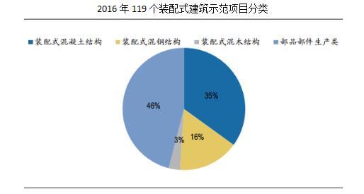 預(yù)制裝配式混凝土(PC) 構(gòu)件是指在工廠中標(biāo)準(zhǔn)化加工生產(chǎn)的混凝土制品, 具有結(jié)構(gòu)性能好、產(chǎn)品質(zhì)量高、 施工速度快等特點, 適用于各類工業(yè)化建筑,具有良好的靈活性和適用性, 主要包括預(yù)制PC墻板、折疊樓板、樓梯和疊合梁等產(chǎn)品。 由于與傳統(tǒng)應(yīng)用較廣的現(xiàn)澆混凝土結(jié)構(gòu)一脈相承,因此也是目前裝配式建筑三大結(jié)構(gòu)體系中推廣最順利,覆蓋范圍最大的一種。從2016年住建部推行的119個裝配式建筑示范項目來看,混凝土結(jié)構(gòu)占比最大達(dá)46%, 系混凝土產(chǎn)業(yè)發(fā)展較早且成本方面具備優(yōu)勢,但PC構(gòu)件領(lǐng)域成本競爭激烈,且優(yōu)化空間有限,短期之內(nèi)難以對傳統(tǒng)現(xiàn)澆混凝土形成替代。與預(yù)制鋼結(jié)構(gòu)相比,雖然占據(jù)成本優(yōu)勢,但難以滿足抗風(fēng)、抗震及超高度、跨度等設(shè)計要求,行業(yè)發(fā)展高度有限。
