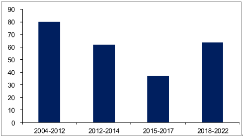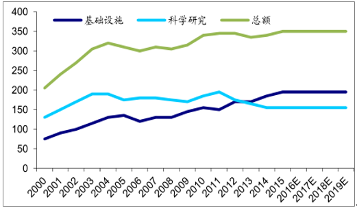 美國NSF海洋領(lǐng)域經(jīng)費(fèi)投入情況(百萬美元)