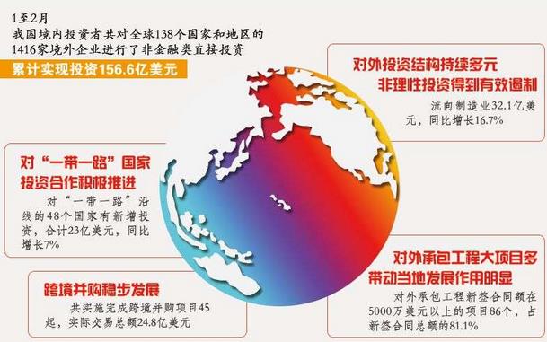 商務(wù)部近日公布的數(shù)據(jù)顯示,2019年前兩個(gè)月,我國(guó)對(duì)外非金融類直接投資累計(jì)實(shí)現(xiàn)投資156.6億美元,對(duì)外投資合作平穩(wěn)健康發(fā)展。...